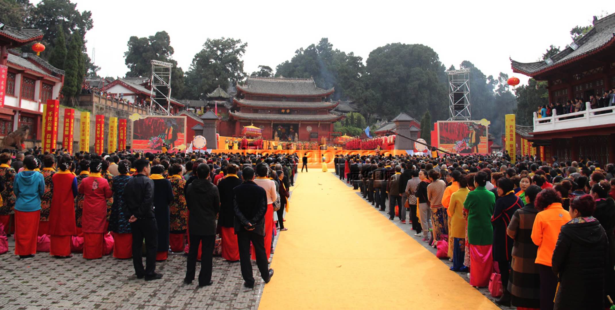 古柏森森,旗幡飄飄。3月19日一大早,兩岸嘉賓以及廣大信眾、游客,身披綬帶,在優雅婉轉的音樂聲中,陸續從七曲山崇文廣場沿祈福大道拾級而上,邁過405級臺階進入七曲山文化廣場。