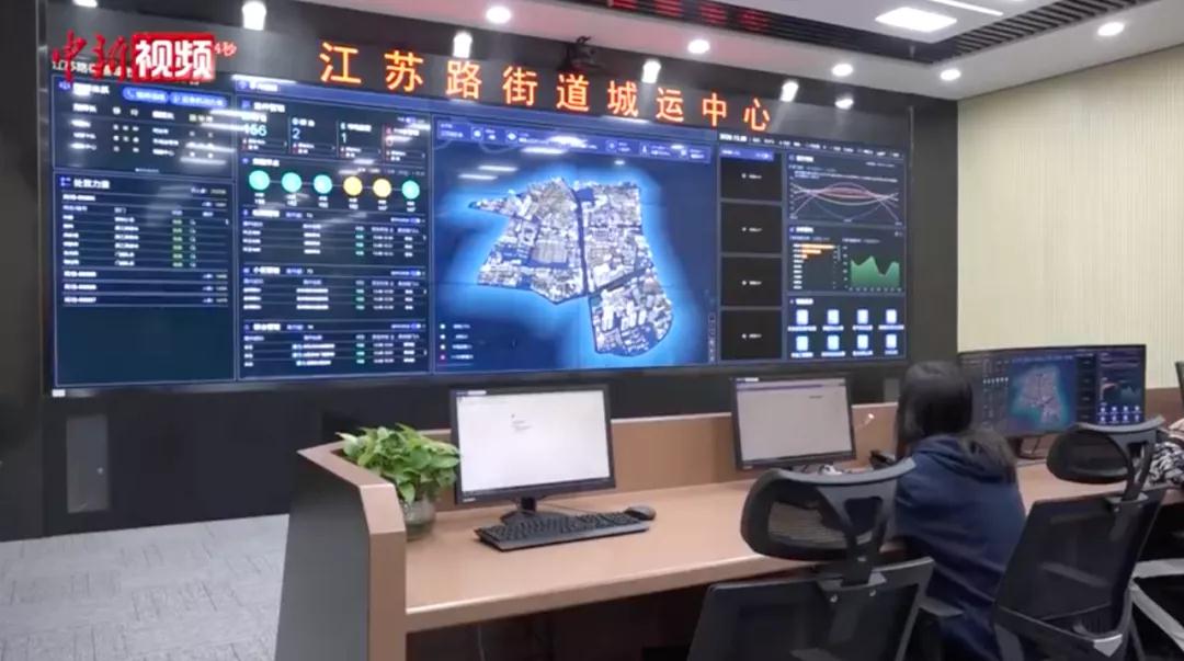 △長寧區江蘇路街道城運中心內,“一網統管”平臺大屏幕上實時顯示轄區內13個居委會每日接報案件數、案件內容與處理進度等信息。